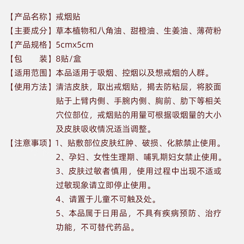 商品名称:北京同仁堂-怡美堂戒烟贴8贴/盒